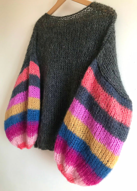 MUSE Dark Grey Silk Mohair with Coloured Striped Balloon Sleeves